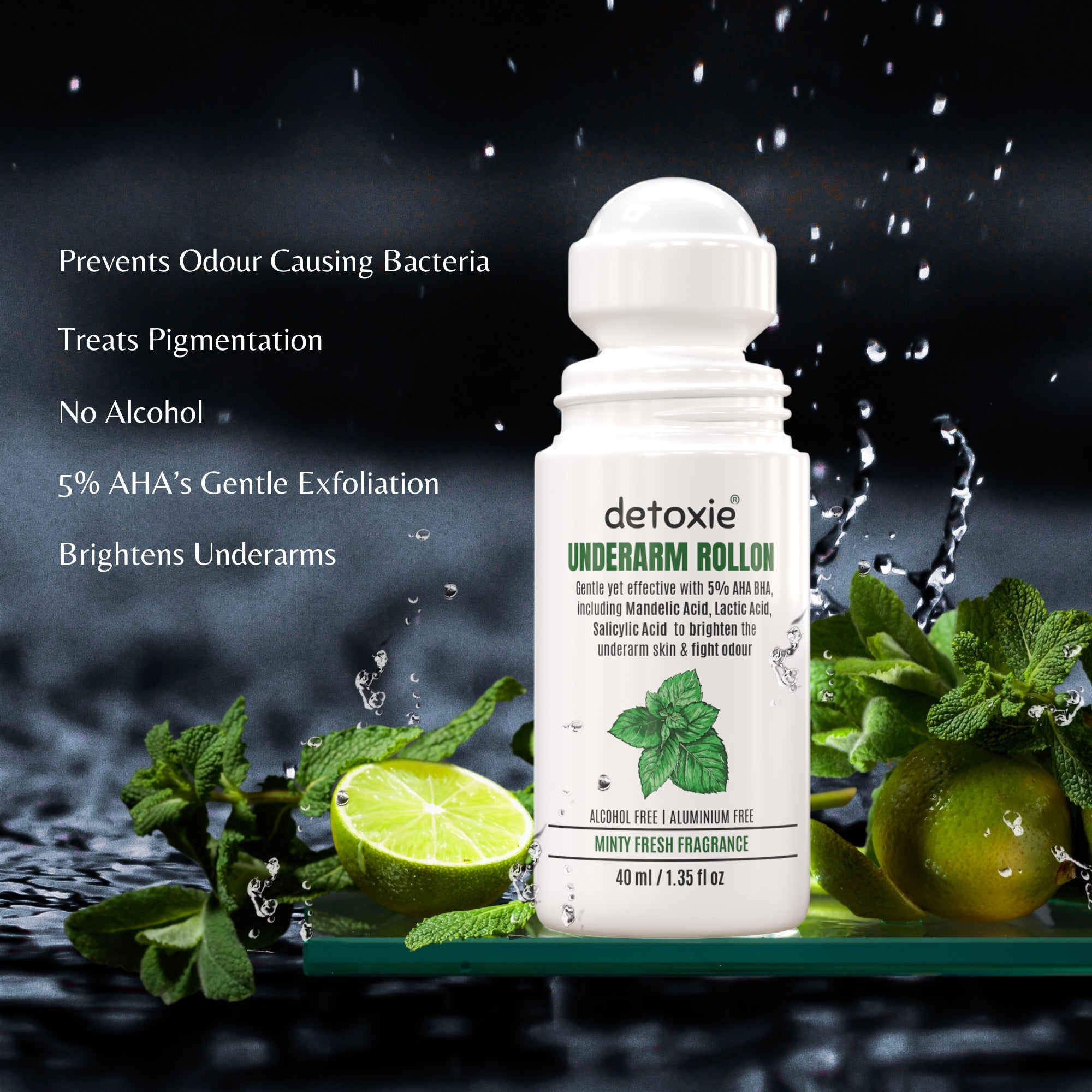 Detoxie’s Underarm Roll-Ons are your daily fix for brighter, fresher underarms. With 1%