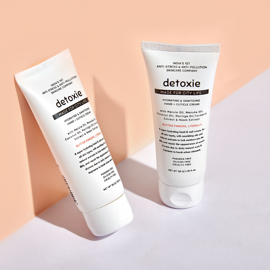 A super hydrating hand and nail cream with the exotic and nourishing goodness of Manuka Oil and Marula Oil, to lock moisture into the skin. The hand cream formula is enhanced further with anti-bacterial ingredients such as Moringa Oil, Turmeric and Neem extracts to repair the damage caused by manual work, exposure to the harsh urban environment elements. A little application leaves your hands feeling soft and velvety. We say "Butter Fingers. Literally"